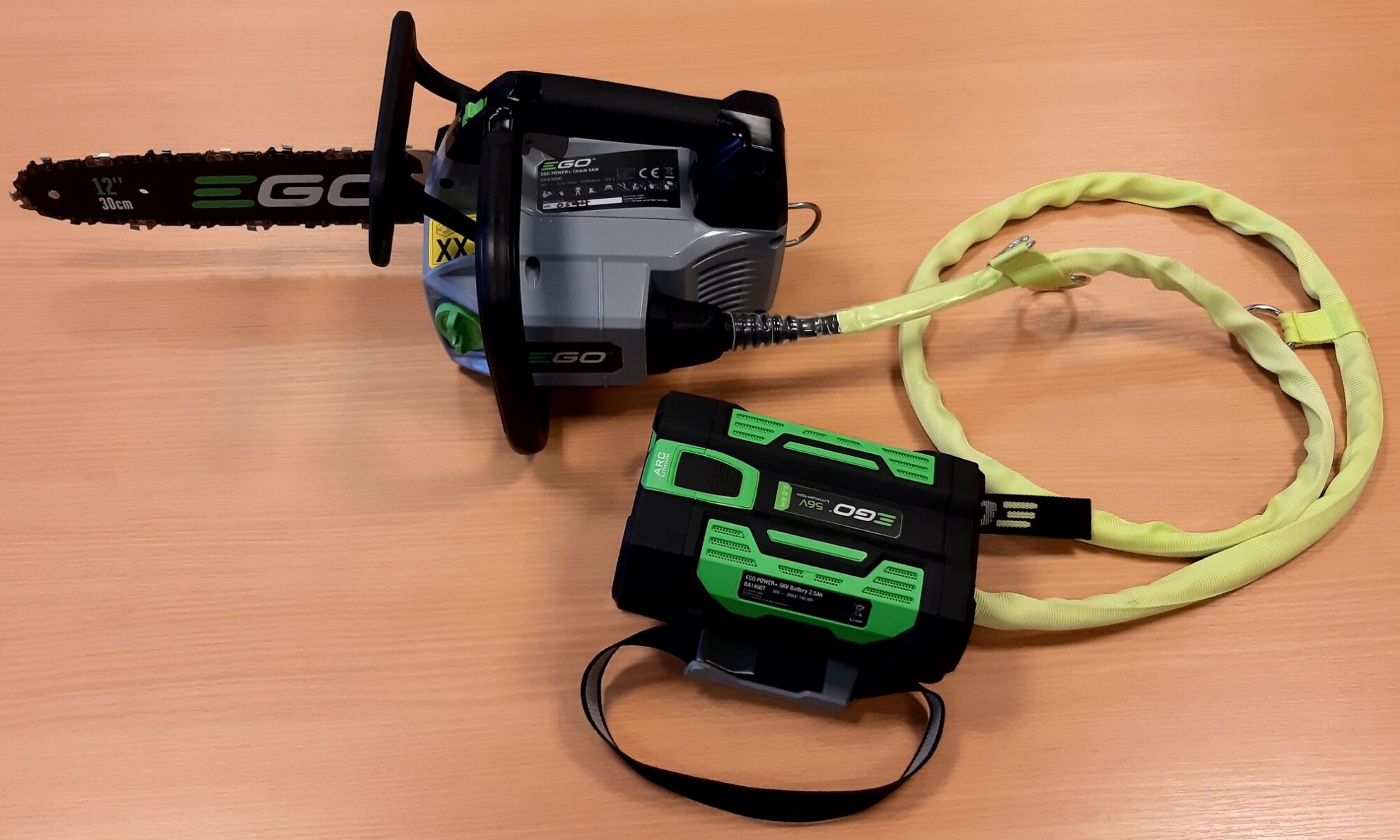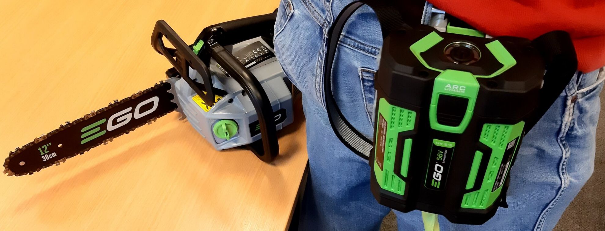 Lehká a kompaktní, jednoruční řetězová pila CSX3000E - Nejmenší z nabídky EGO, řetězová pila s lištou 30cm a řeznou rychlostí 20,0 m/s, pilovým řetězem EGO AC1200 (90PX - 3/8" x 1,1mm) s dělením článků 3/8" a šířkou vodící drážky 1,1mm a hmotností 3,5kg svědší o vysokých ambicích pily. Svým výkonem se zcela vyrovná silnějším benzínovým pilám v dané kategorii a jedná se o ideální stroj pro práci specialistů na arboristiku, stromovou chirurgii, sadařství, tesařství nebo na údržbu veřejné zeleně v místech, citlivých na hluk a zplodiny výfuku, jako jsou školy, obytné zóny, nemocnice, hřbitovy apod.