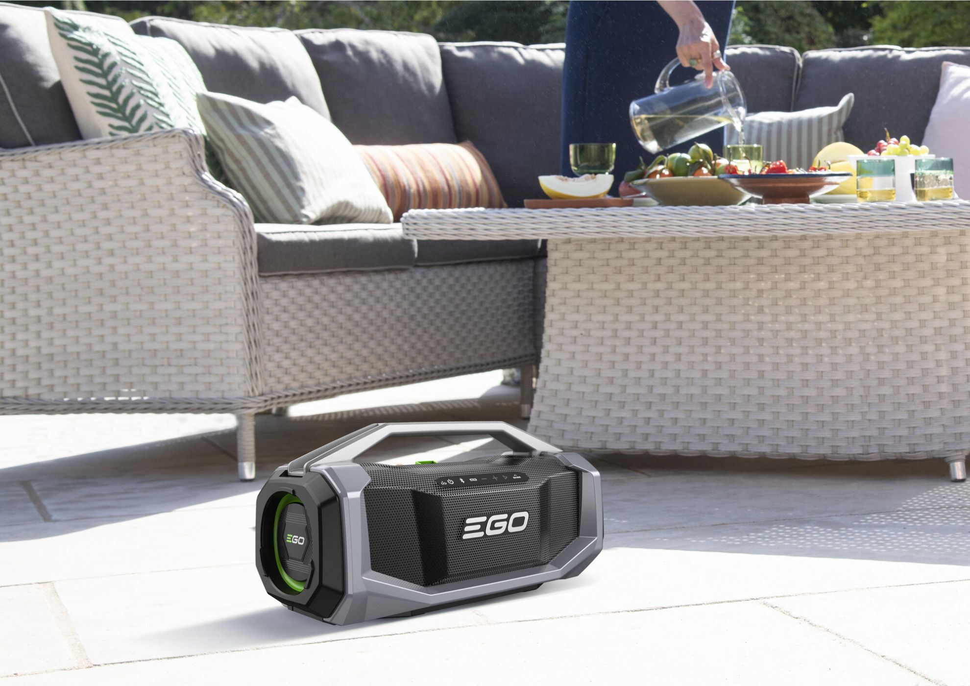 Pro kvalitní zvukovou reprodukci za každých podmínek jak uvnitř, tak i venku slouží outdoorový reproduktor EGO SK1800E. Reproduktor je opatřen stupněm krytí IP54, které zaručí dostatečnou ochranu proti prachu i vodě. Pro napájení lze použít jakoukoliv systémovou baterii EGO.