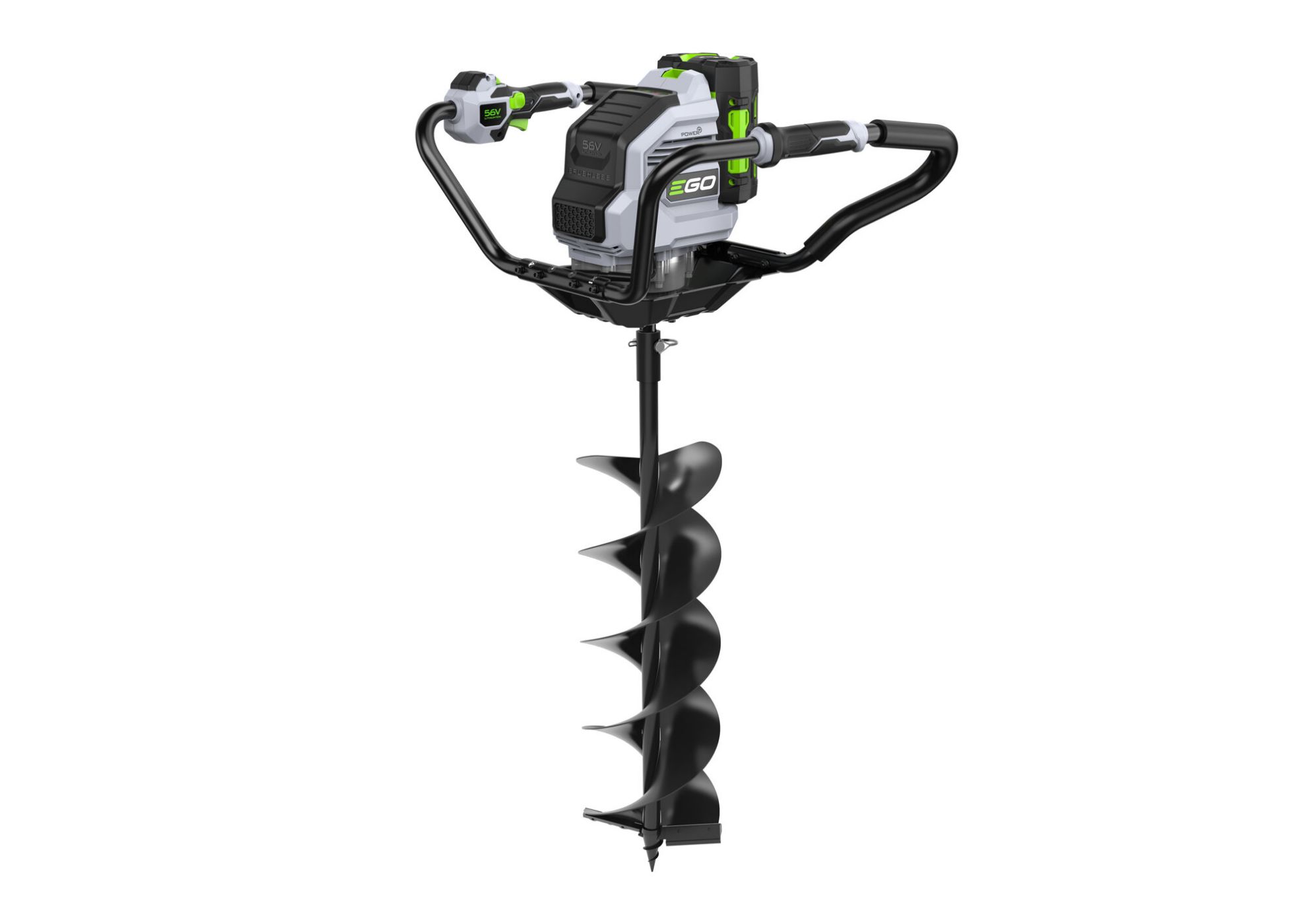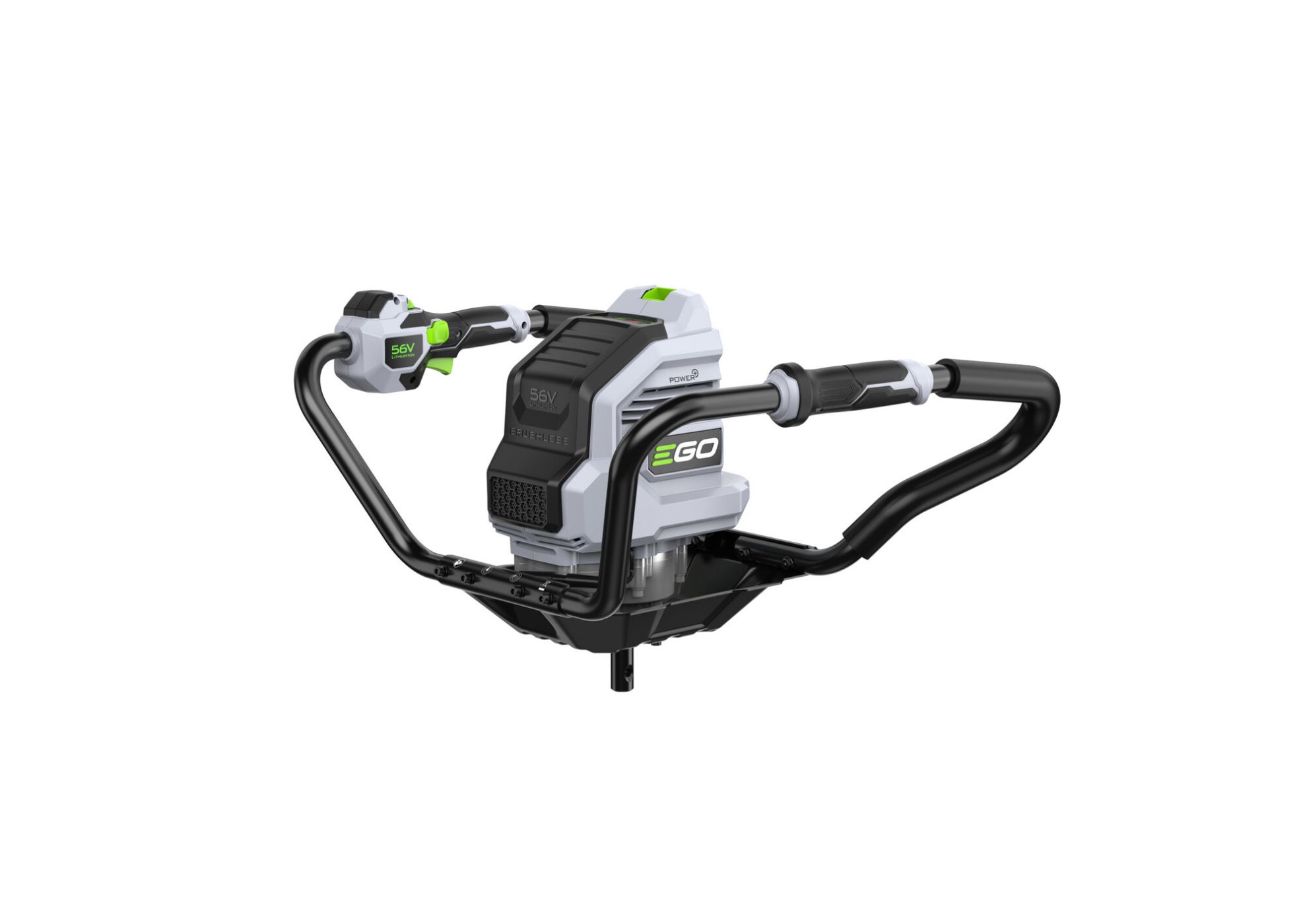 Pohonná jednotka PHA7400E - Výkonná pohonná jednotka půdního vrtáku EGO je opatřena ergonomicky navrženou ovládací rukojetí s variabilním ovládáním rychlosti otáčení zemního vrtáku s přepínáním ve 2 rychlostních režimech a voličem zpětného chodu.
