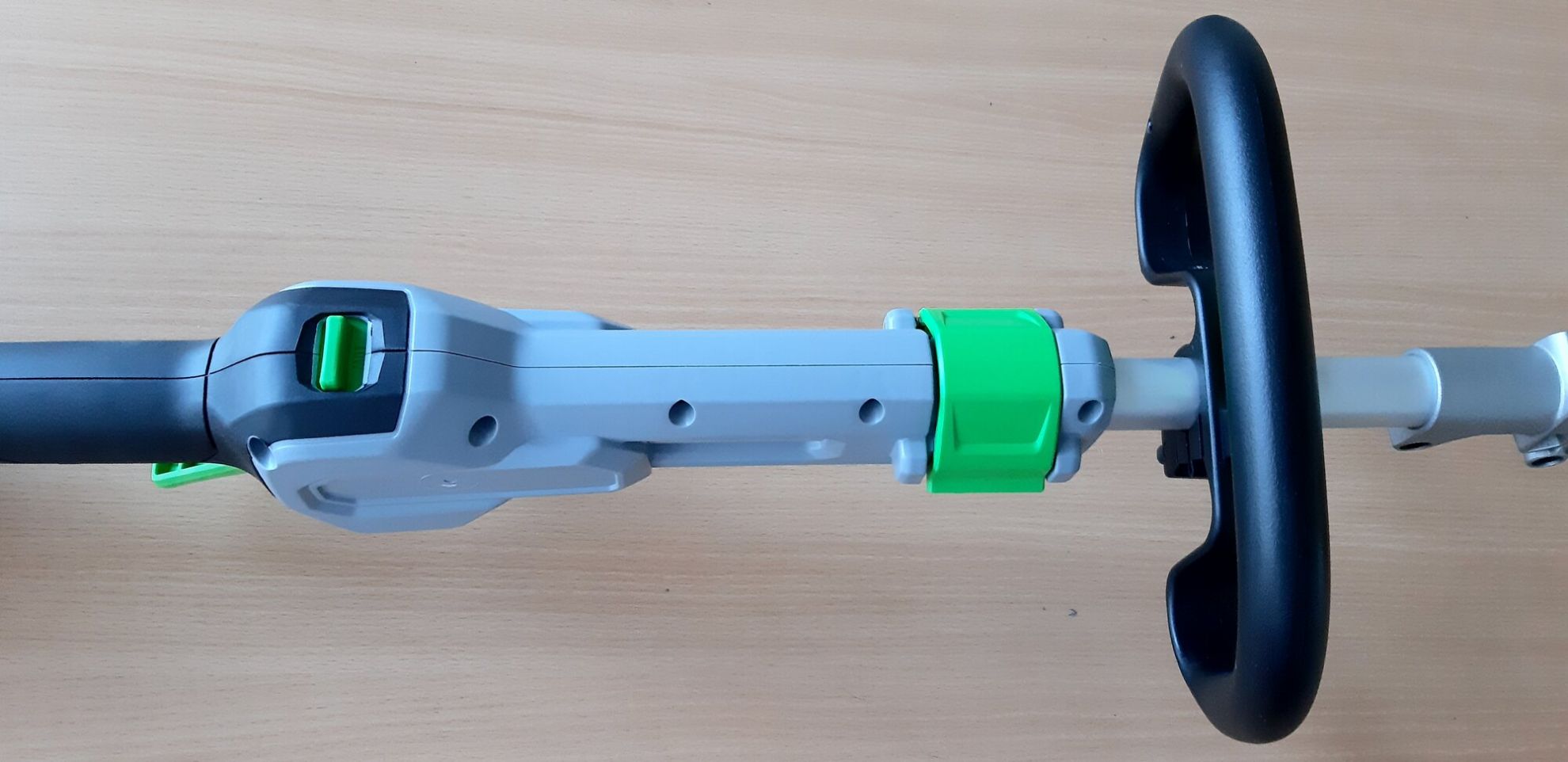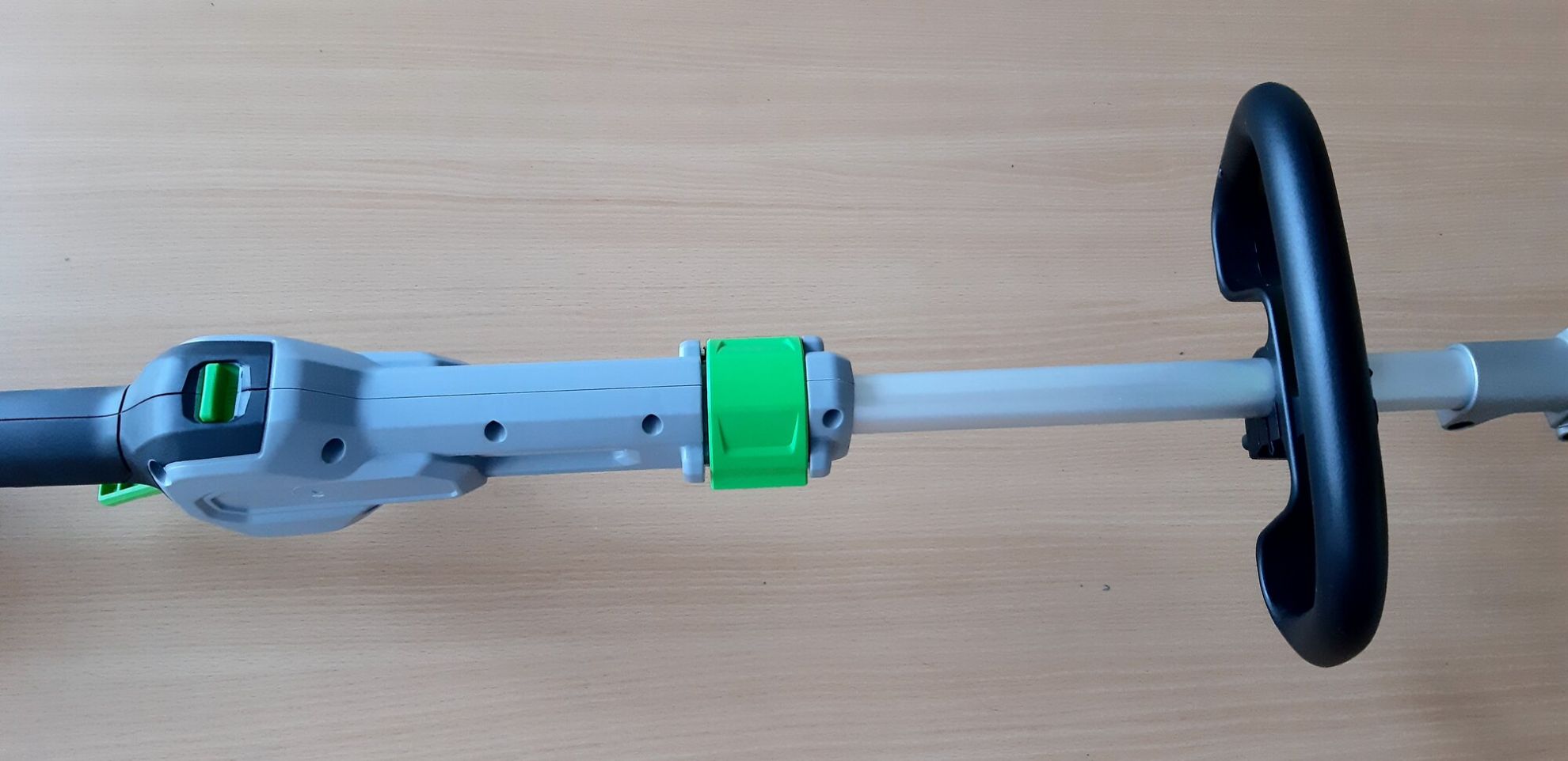 Tubus vyžínače lze po odjištění prodloužit nebo zkrátit o cca 25 cm tak, aby se svojí délkou lépe přizpůsobil výšce postavy a délce rukou uživatele. Ideální pracovní polohu stroje si tak snadno zvolí jak žena drobnější postavy, tak i muž s postavou basketbalisty. Tomu přispívá i posuvná oblouková ovládací rukojeť. Po uvolnění šroubu na skládacím kloubu je možné stroj složit do přepravní a skladovací polohy
