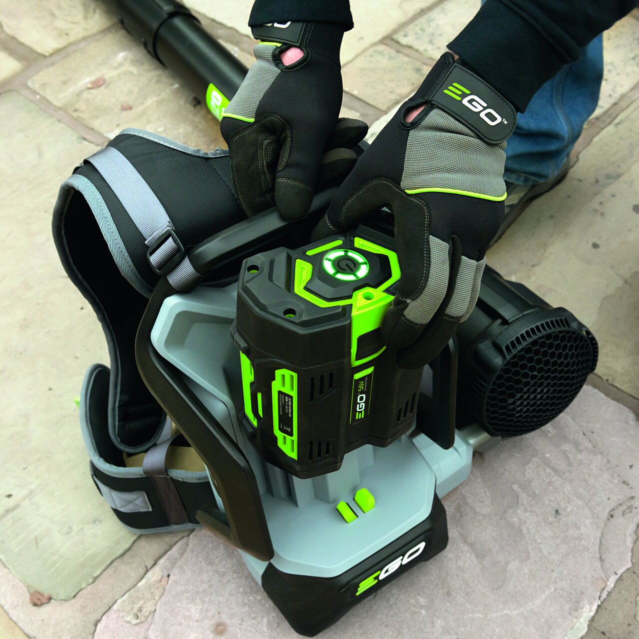 Profesionální úklid povrchů vyžaduje výkonný a spolehlivý stroj. Uklizený trávník na podzim v zámeckých zahradách, parcích nebo na zahradách většinou zakryje vrstva spadaného listí z okolních stromů. Nebo čisté chodníky ve městech, areálech nemocnic, škol a dalších institucí citlivých na hlučnost zbavené zbytky posečené trávy a jiných nečistot. To je práce přesně pro tento zádový fukar. Zádový AKU fukar díky výkonné turbíně a zvýšenému režimu "BOOST" vyfukuje vzduch rychlostí až téměř 200km/h. To je dostatečný výkon pro odklizení spadaného listí z parku nebo pro úklid chodníku od zbytků posečené trávy, prachu a jiných nečistot. Dokonce je schopen spolehlivě "odfouknout" i vrstvu lehkého, čerstvě padlého sněhu z chodníků či parkovišť. Pro pohodlnou práci je stroj nesen na ramenou obsluhy a komfortní postroj dokonale rovnoměrně rozkládá hmotnost baterie na obě ramena. Pro snadnou manipulaci je celý stroj dokonale ergonomicky vyvážen. Velkokapacitní výfukový tubus s možností použití ploché trysky obluha snadno nasměruje přesně do místa. Rukojeť je na tubusu letmo uložena tak, že se přizpůsobí každé postavě uživatele a je opatřena bezpečnostní pojistkou, která zaručuje v případě uvolnění okamžité vypnutí stroje. Na rukojeti je umístněn vypínač, který zajišťuje při stisknutí plynulé a postupné spuštění stroje a fixátorem pro aretaci aktuálně nastavené rychlosti. V horní části rukojeti je v dosahu prstu umístěno tlačítko "BOOST". Díky příjemné ovládácí rukojeti potažené měkčenou gumou, je držení a ovládání fukaru při práci velmi stabilní, bezpečné a pohodlné. Na pohon fukaru lze použít jakoukoliv baterii ze sortimentu EGO a např. baterie 5,0Ah vám umožní pracovat nepřetržitě od 15 min v režimu "BOST" až do 120 minut v nízkém režimu. Naše lithiové baterie EGO Power+ 56V Arc Vám poskytnou dostatek energie pro pohon dostatečně výkonného a účinného bezuhlíkového elektromotoru s přímým náhonem na vysokorychlostní turbínu. Stroj je mimořádně tichý. Nízká hmotnost, rozložená na ramena obsluhy, pohodlný úchop a snadná manipulace dělají z tohoto fukaru skutečného "profíka" jak do firmy, tak i komunálních služeb.