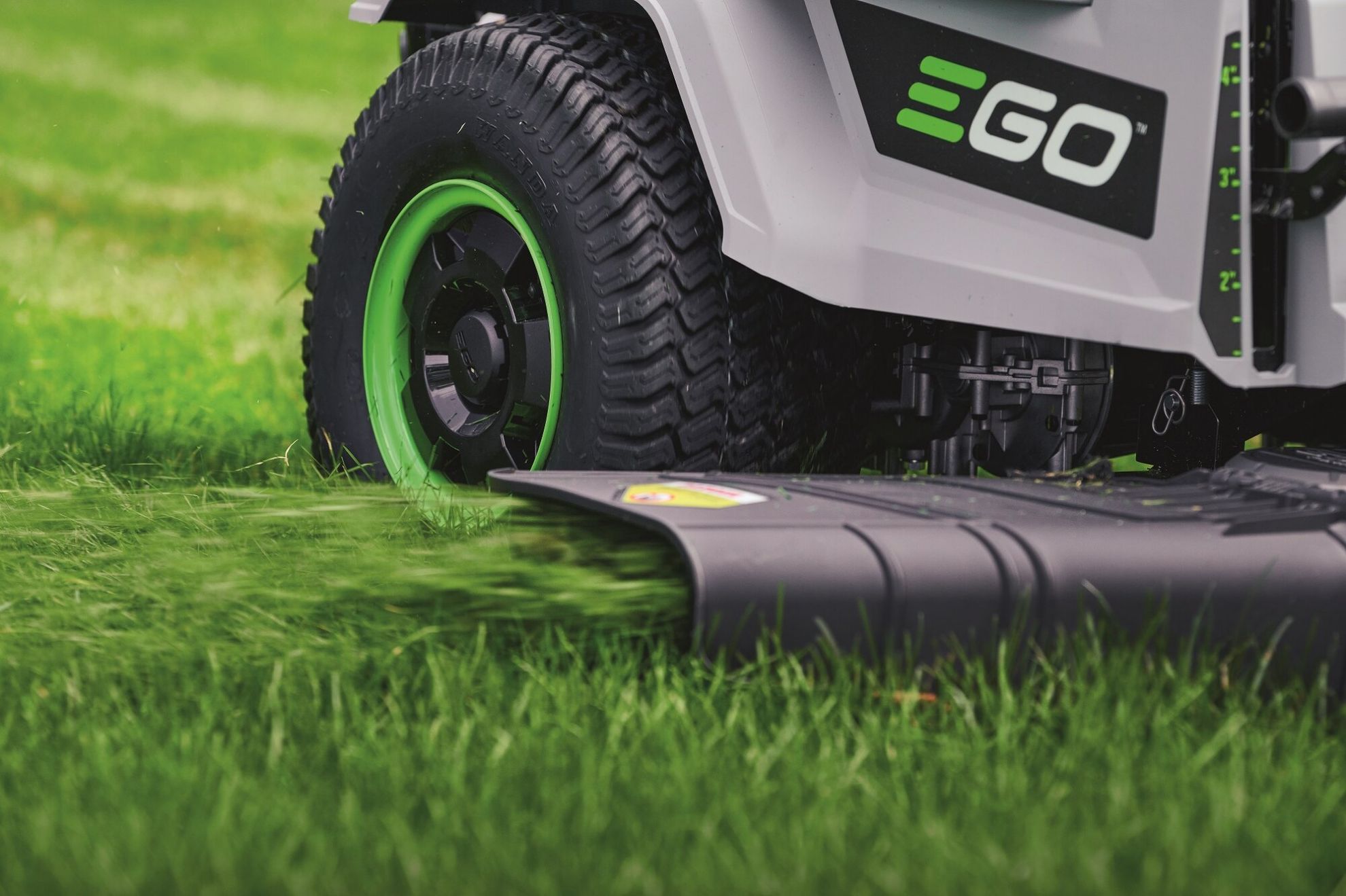 Model EGO Z6 - je prvním modelem Aku rideru na trhu s nulovým poloměrem zatáčení a záběrem sekání 107cm. Síla od spolehlivých a výkonných elektromotorů je na pojezdová zadní kola předávána a plynule dávkována prostřednictvím variabilního elektropojezdu. Pro napájení téhle mašiny slouží až 6 ks EGO Power+ 56V ARC Lithiových baterií „portálové“ konstrukce.