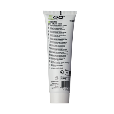 Úhlové převody křovinořezů, travních vyžínačů a nůžek na živé ploty jsou jednou z nejvíce namáhaných součástí stroje. Pomocí speciálního, biologicky odbauratenlého maziva EGO AGT1000 snadno a spolehlivě zajistíte, aby vaše křovinořezy, vyžínače a nůžky na živé ploty EGO spolehlivě a dlouho fungovaly a podávaly špičkový výkon. Toto 100g biologicky odbouratelné mazivo je speciálně vyvinuto pro zajištění vynikajícího mazání, minimalizaci tření a prodloužení životnosti vašeho nářadí, a to vše při zachování šetrnosti k životnímu prostředí.