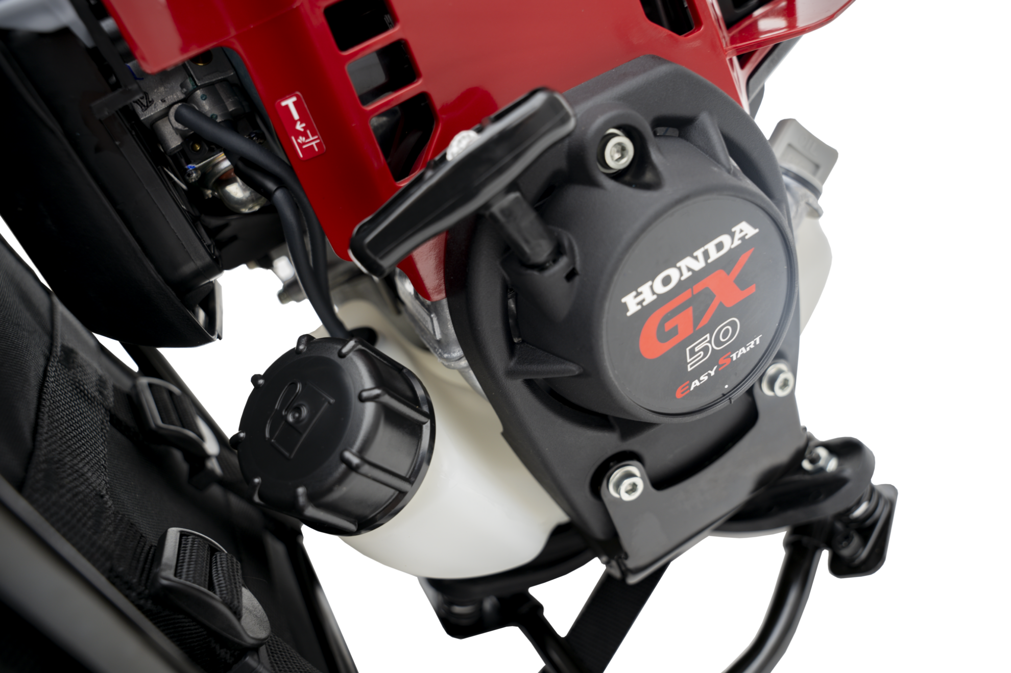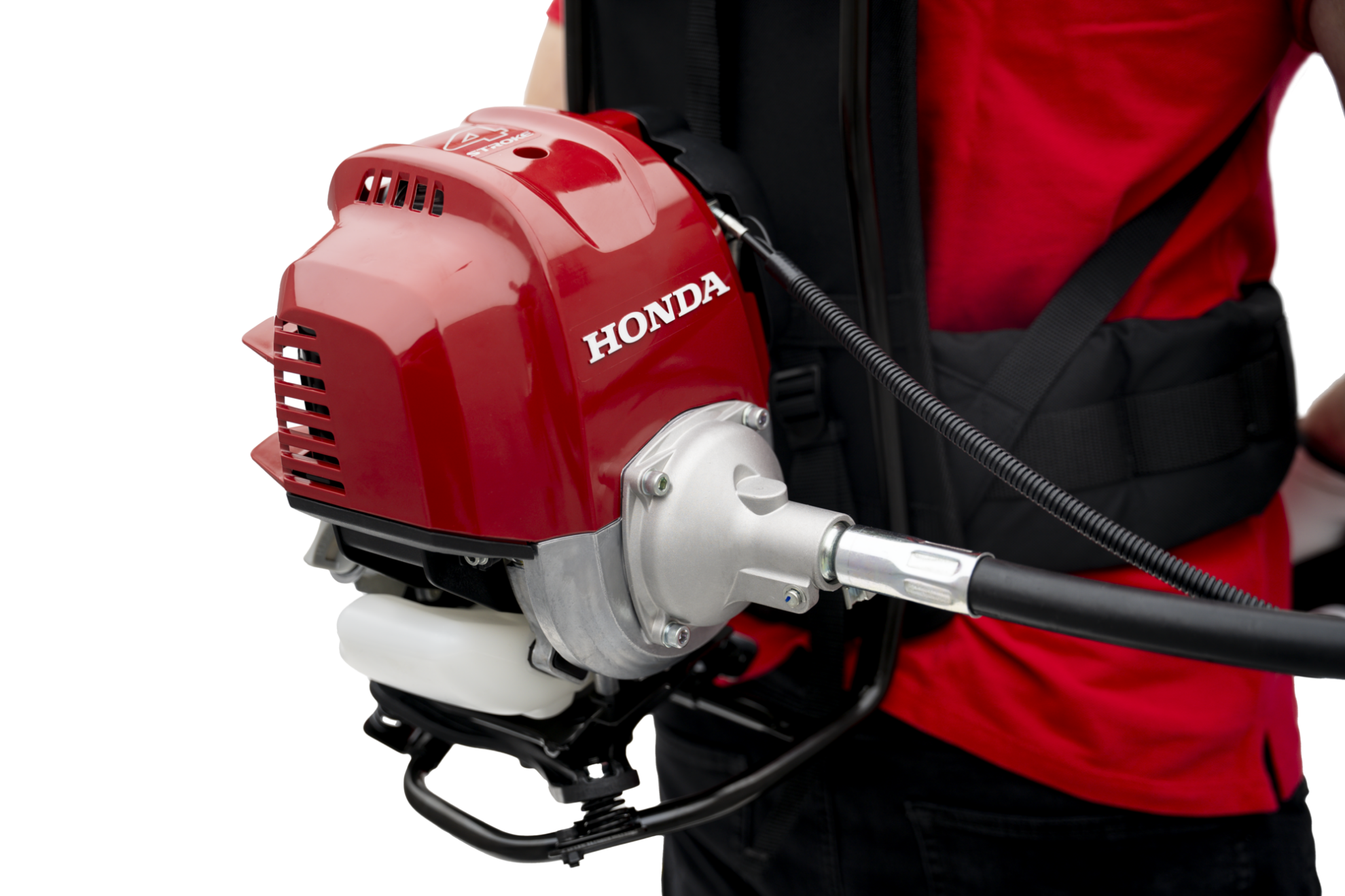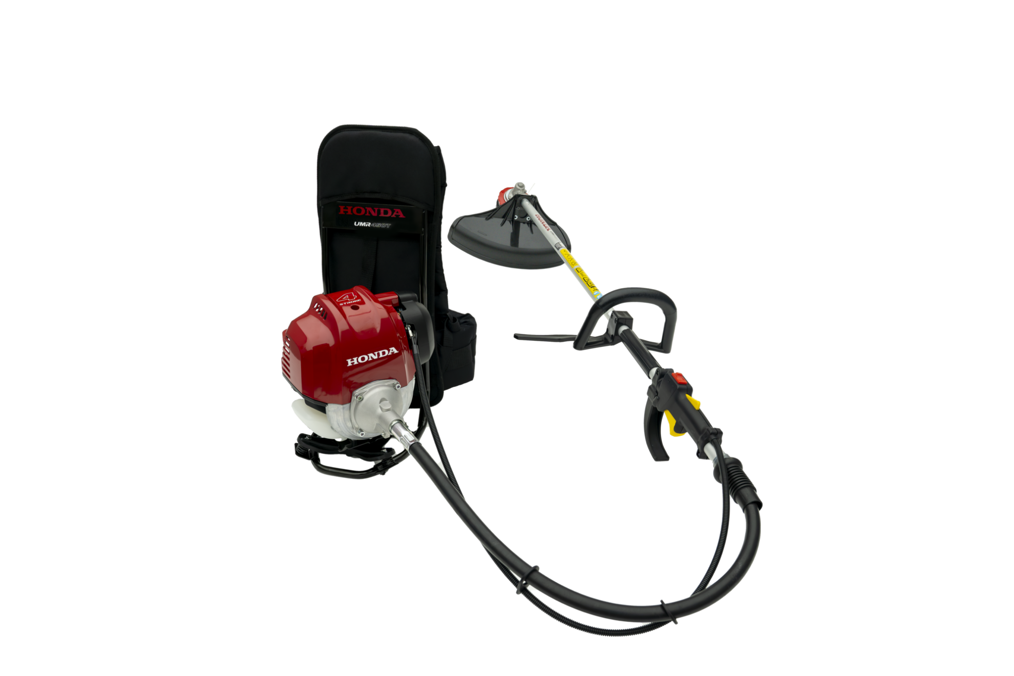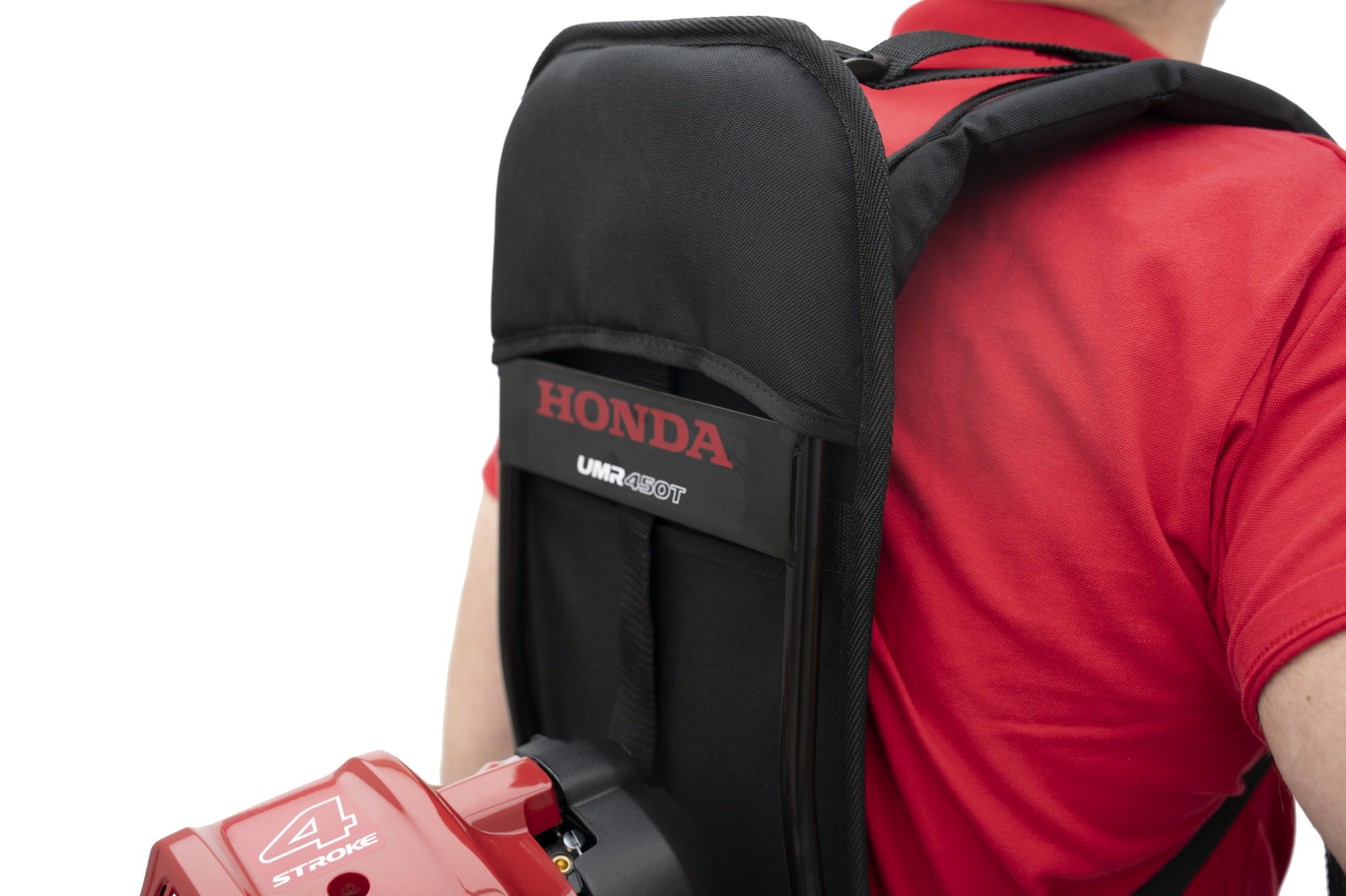 Honda UMR 450 L: zádový model křovinořezu Honda, poháněný mimořádně silným 4-taktním motorem GX50, se snadným startováním, stabilním a konstantním výkonem 2HP, antivibračním nosným rámem s komfortním zádovým postrojem a profesionální žací strunovou hlavou typu Bump & Feed v základním vybevení.
