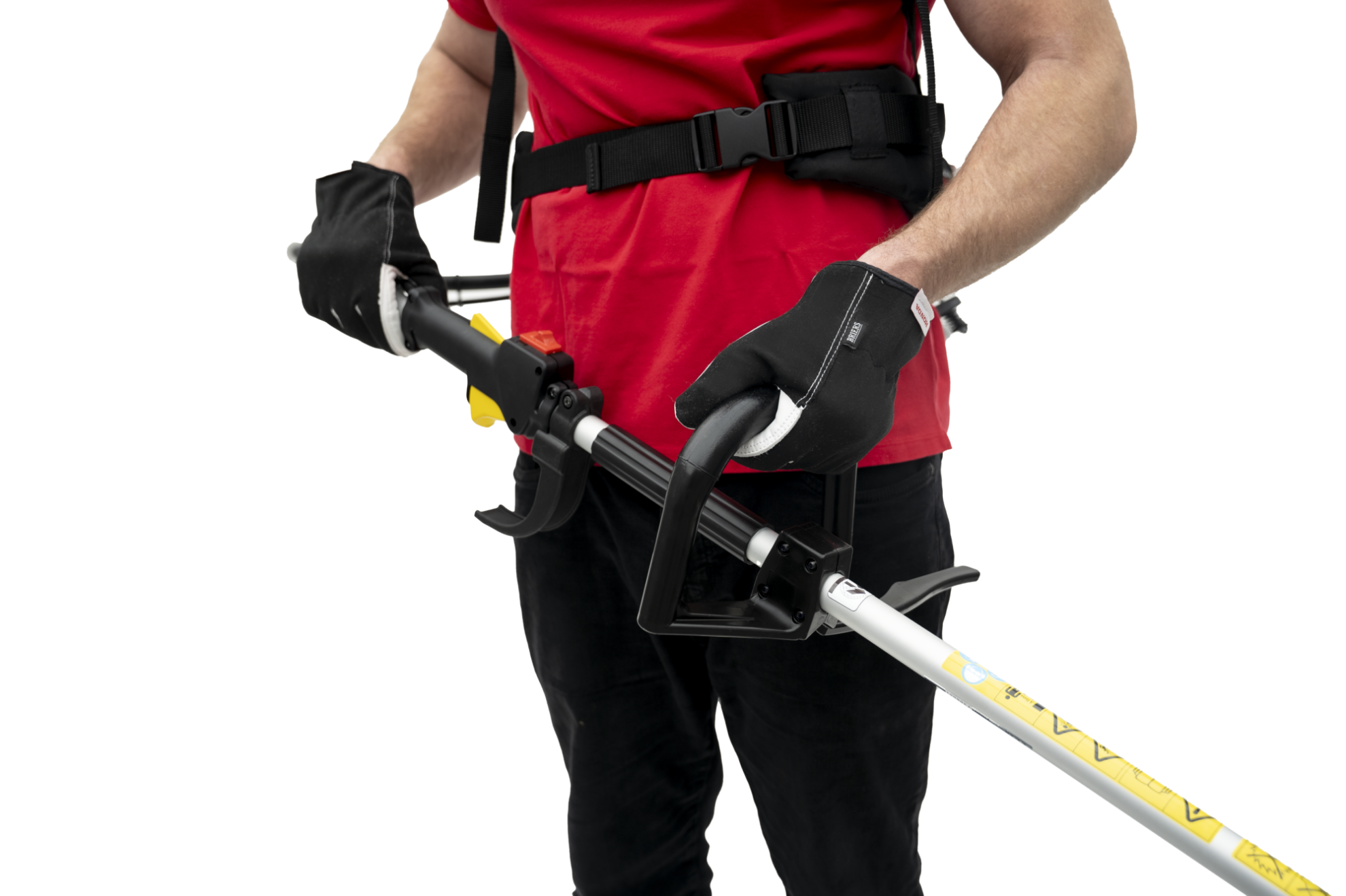 Zádový křovinořez UMR450 je nenahraditelný pomocník při likvidaci přerostlých travin, náletů a křovin hlavně v prudkém svahu, v sadech, vinicích, parcích a úzkých či nepřístupných prostorech na zahradách. Hmotnost motoru je rovnoměrně rozložena důmyslným rámem a komfortním postrojem na bedra uživatele. Kombinované pružinové tlumiče (s prodlouženou životností ve srovnání s gumovými silentbloky) byly navrženy s důrazem na dokonalé pohlcení veškerých vibrací, produkovaných chodem motoru. Každý uživatel při práci později sám ocení mimořádný komfort a pohodlí při práci. S komfortním nosným systémem pracujete díky dokonalému rozložení hmotnosti i při dlouhodobém použití bez námahy a pohodlně. Zádový postroj je ergonomicky ztvárněný tak, aby byl na zádech dobře odvětraný a prodyšné bohatě polstrované popruhy zajišťují příjemný pocit při nošení a podstatně oddalují pocit únavy při dlouhodobé práci. Přenos síly od motoru na pracovní nástroj je zajištěn ohebnou hřídelí, takže je zcela zajištěna maximální míra manévrovatelnosti a obratnosti. Obsluha při práci má neustále stabilní a bezpečný postoj i v náročném členitém či svažitém terénu. Díky jednoruční multifunkční rukojeti můžete stroj snadno a spolehlivě ovládat jednou rukou. Profesionální strunová hlava s doplněním náhradní strunové nápně bez nutnosti demontáže je schopna spolehlivě pracovat se strunou o ∅ 2,7 nebo 3,0 mm. Výkonný, úsporný, tichý motor, schopný udržet konstantní výkon ocení hlavně uživatelé z komerčního prostředí komunálních služeb při likvidaci hustých porostů v nepřístupném či stísněném terénu. Patentově chráněný miničtyřtaktní motor o obsahu 50 ccm o výkonu 2,0 HP je s dostatečnou rezervou bez problémů schopen pokrýt požadavky náročných uživatelů. Naopak díky vysokému výkonu a velkému kroutícímu momentu není dovoleno použití ocelového žacího kotouče nebo jiného žacího nástroje než strunová hlava s nylonovou náplní. Svým výkonem, komfortem použití a hlavně neagresivní hlučností a emisemi hravě překonává své konkurenty s dvoutaktním motorem. Základní výbava křovinořezu zahrnuje kromě stroje samotného, komfortní, bohatě polstrovaný zádový postroj, strunovou hlavu, ochranný kryt, sadu nářadí pro montáž a základní údržbu a praktický textilní vak na toto příslušenství.