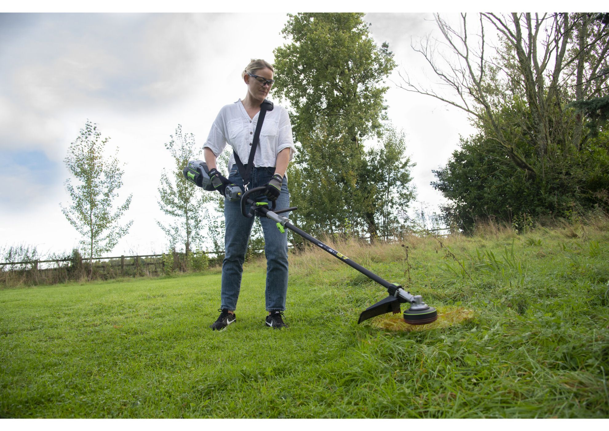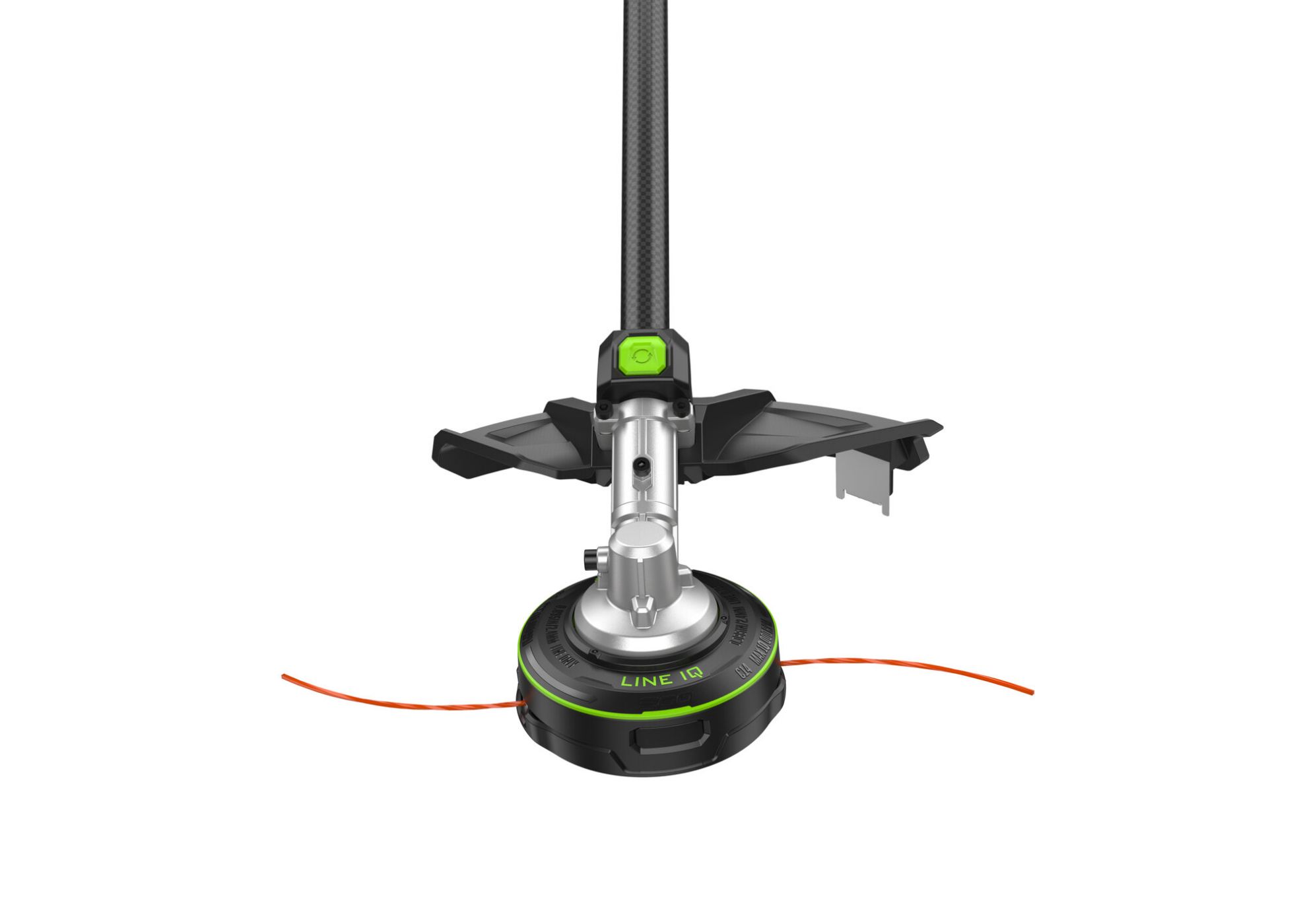Žací nástavec se strunovou hlavnou typu "Line IQ". Automatická strunová hlava zajišťuje optimální dávkování žací struny dle míry její opotřebení zcela automaticky. Při práci se struna zkracuje ubroušením a občas je nutné ji povysunout na pracovní délku. Technologie EGO "Line IQ" za Vás zvládne i tuto činnost. Nylonová žací struna o ∅ 2,4mm namotaná na cívce plně automatické strunové hlavy "Line IQ" se při práci v případě potřeby automaticky ubroušenou strunu prodlouží bez jakéhokoliv zásahu uživatele. Díky "Line IQ" odpadá tak již tradiční poklep strunovou hlavou o zem a sekací rameno žací struny je zcela automaticky nepřetržitě udržováno na svém pracovním záběru 430mm.