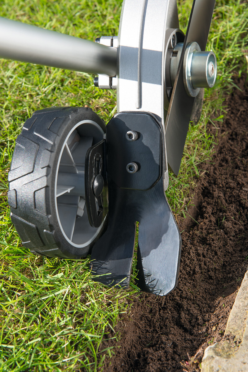 Přesné, pohodlné a hlavně rychlé začištění a zarovnání trávníku v přechodech trávníku na jiné povrchy snadno docílíte při použití nástavce se zařezávačem trávníku. Pracovní nůž o průměru 200 mm zařezávače je vyroben z vysoce odolné oceli se otáčí ve svislé rovině a zařezává do trávníku dle vámi zvoleného tvaru a směru. Hloubku řezu lze plynule nastavit tak, aby vyhovovala hloubce kořenového systému Vašeho trávníku, maximálně však do 75mm hloubky. Značně Vám ulehčí dlouhodobou a otravnou manuální práci se zarovnáváním hrany travních ploch pomocí různých rýčů a škrabek. Nástavec je opatřen bezpečnostním ochranným krytem, tak, aby obsluha byla dostatečně ochráněna proti případnému odlétnutí kamínku a pod. Zavěšením celého stroje na jednostranný nosný popruh pohonné jednotky je práce se zařezávačem trávníku velmi snadnou a pohodlnou záležitostí.