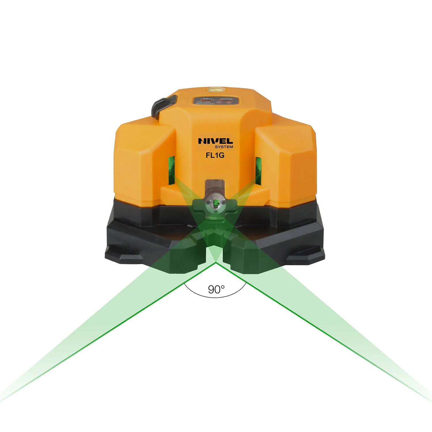 Nivel System FL1G – přesný univerzální křížový laser s vysoce viditelným zeleným paprskem Čtverec generovaný laserem je navržen obzvláště pro řemeslníky. Ponechává si vlastnosti originálního čtverce, ale vrhá zároveň dvě 90° laserové prodloužené čáry, které mohou zvětšit jeho délku. Mohou také změnit úhel značení čáry podle rozsahu měření úhlu, což snižuje dobu měření úhlu a značení čar. Tento laser je ideálním přístrojem pro úhlové rozvržení, perfektní pro dokončovací práce a pokládku podlah (např. obdělávání) přesné a spolehlivé zařízení s vysoce viditelným zeleným laserovým paprskem – výrazný zelený laserový paprsek (4krát viditelnější než je červený paprsek) zaručuje pohodlnou práci za každých podmínek, zařízení umožňuje pracovat s přesností ±1 mm/5 m přesné zobrazení paprsku– vysoce kvalitní optika vytváří laserové čáry, které jsou velmi dobře vidět (i na slunečných místech) všestranný a víceúčelový – laserové paprsky jsou referenčními čarami pro horizontální práce (paprsky zobrazené dolů) a pro horizontální i vertikální práce (paprsky zobrazené dopředu) ještě větší dosah – zařízení je možné použít také venku nebo pro rozsáhlejší práce (možnost spolupráce s laserovým senzorem) intuitivní ovládání – ovládání jedním tlačítkem odolná konstrukce – IP42