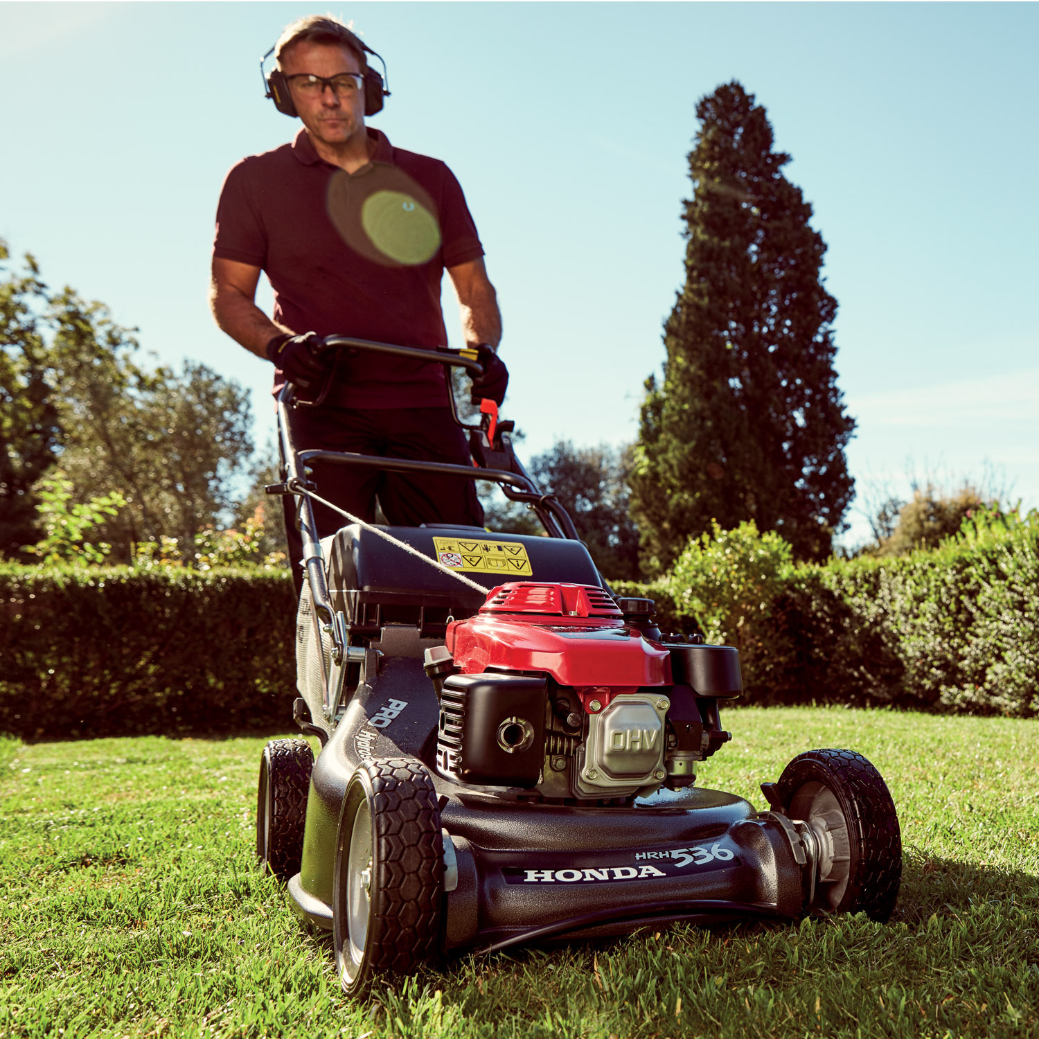 Honda HRH 536 HX: profesionální motorová sekačka s hydrostatickým pojezdem poháněným kardanovou hřídelí, s motorem "profi" řady GXV, s Roto-stopem®, na podvozku odlitém z hliníkové slitiny se záběrem sečení 53 cm, hliníkovými koly na průmyslových ložiscích a ovládací rukojetí namontována k podvozku sekačky s pomocnou vzpěrou a zesilovacím ramínkem.