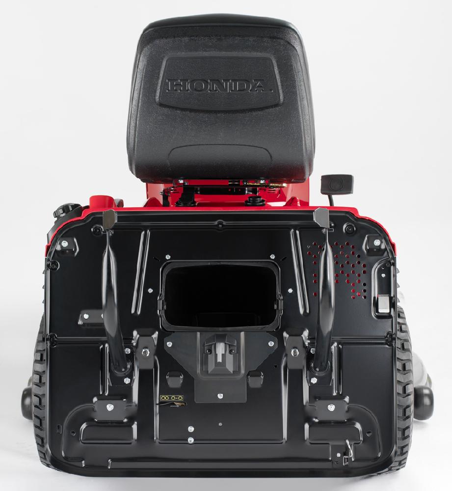 Se sečením o záběru 102 cm si poradí s likvidací travního porostu i na ploše o velikosti několika tisíc metrů čtverečních a přitom svou velikostí je velmi obratný a lze s ním manévrovat i na poměrně členitých zahradách či plochách. Tomu přispívá i způsob ovládání rychlosti jízdy, kdy dle míry stlačení pojezdového pedálu plynule regulujete rychlost od nuly do cca 8,2 km/hod. Hřebenové řízení je přesné a poloměr zatáčení vám umožní perfektně „obkroužit“ i keře, stromy, záhony nebo jiné překážky. Ergonomická geometrie umístění sedačky, volantu a ovládacích prvků vám umožní i dlouhodobou práci bez pocitu únavy. Srdcem traktoru je pohonná jednotka Honda GCV530, vidlicový ležatý dvouválec s rozvodem OHC, zdvihového objemu 530 ccm a výkonové kategorie 17 koní. U strojů, jakým je zahradní traktor je velmi důležitá schopnost udržet si konstantní kroutící moment, který je zde bezkonkurenčních více než 34 N.m.